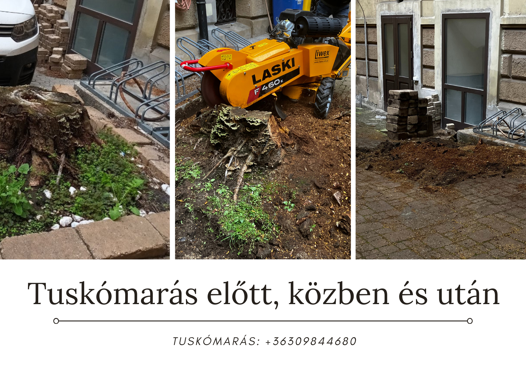 A tuskómarást te is megrendelheted tőlünk. Nem kell mást tenned, csak hívnod a +36309844680 telefonszámot vagy visszahívást kérned az űrlapunk kitöltésével. A megrendelést minden esetben ingyenes helyszíni felmérés előzi meg. A felmérés ingyenes és nem kötelez semmire, viszont szükséges ahhoz, hogy a legoptimálisabb árajánlatot tudjuk adni, ami alapján eldöntheted, hogy megbízol-e minket a munka elvégzésével vagy sem. A tuskómarásnak nincs pontos ára. Mivel minden feladat más és más, fontos látnunk, hogy milyen körülmények és feladatok várnak majd ránk. Ha tudjuk, hogy pontosan mire számíthatunk a munkavégzés során, akkor csak a szükséges felszereléssel és munkaerővel vonulunk ki, így gazdaságosabb és olcsóbb lesz a feladat megoldása mindkettőnk számára.